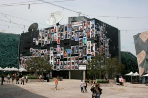 I liked this. It is installed in Federation Square on the external walls of the Crossbar building. You can read more about it on the All of Us website.