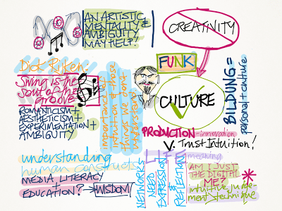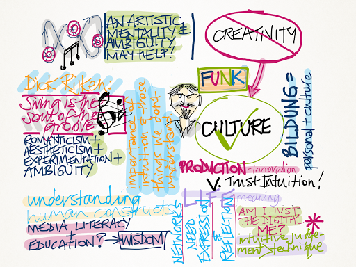 Dick Rijken’s keynote Swing is the Soul of the Groove was one that I arranged, so again, maybe I am biased here, but I loved it. It seemed to me at least that the whole week flowed into his final keynote and he nicely wrapped up many of the main themes. He stressed culture over the vogue words: creativity and innovation. He illustrated his points with visual and musical storytelling and I was in two minds as to whether I should just watch or try to record some thoughts and reminders.