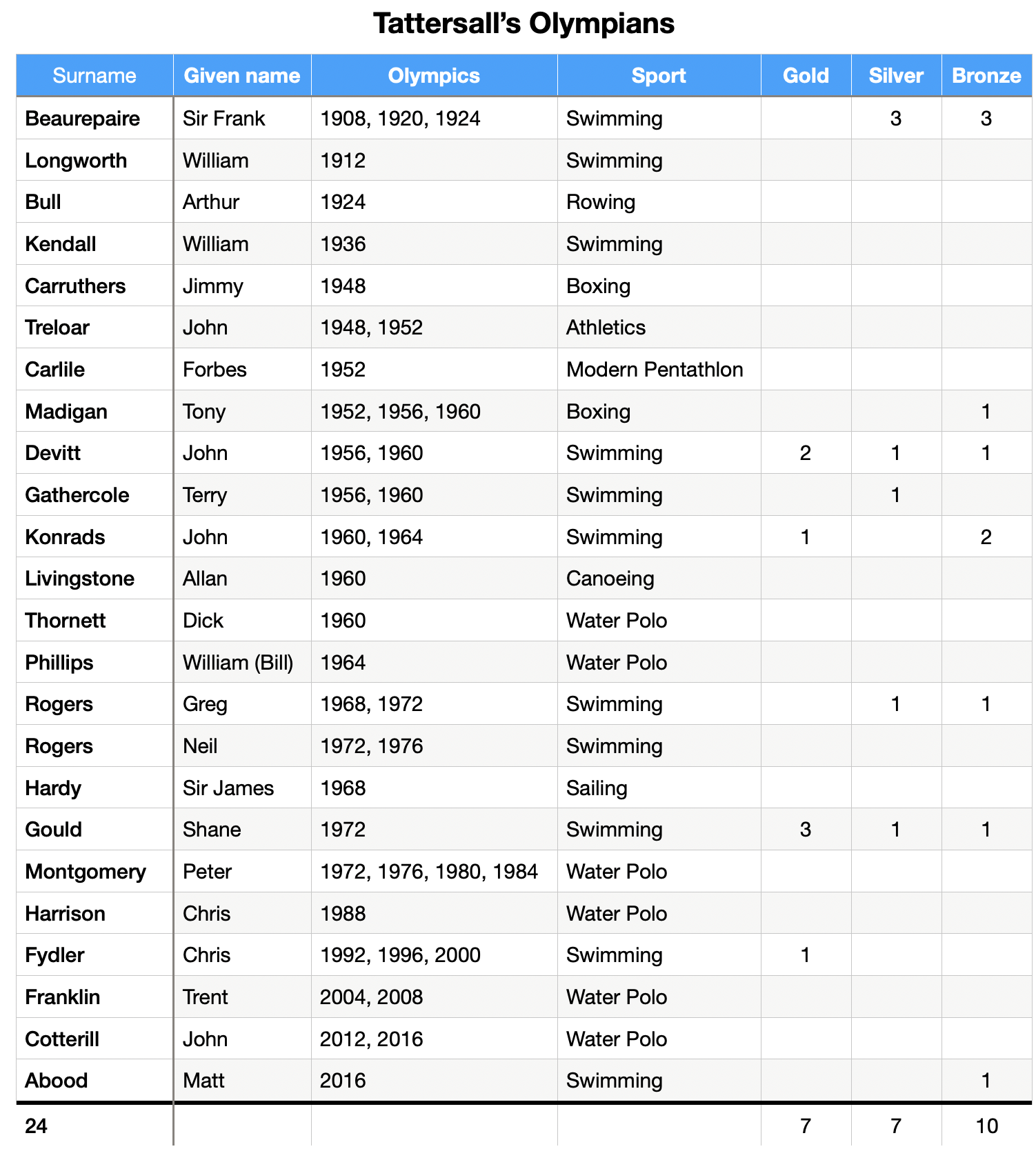 My research to date is represented in the attached image where I have listed 24 names, when they represented and what medals they won. I think I’m pretty close to correct, but I’d love further information if anyone has any. The source for the information in the table below is https://www.olympics.com.au